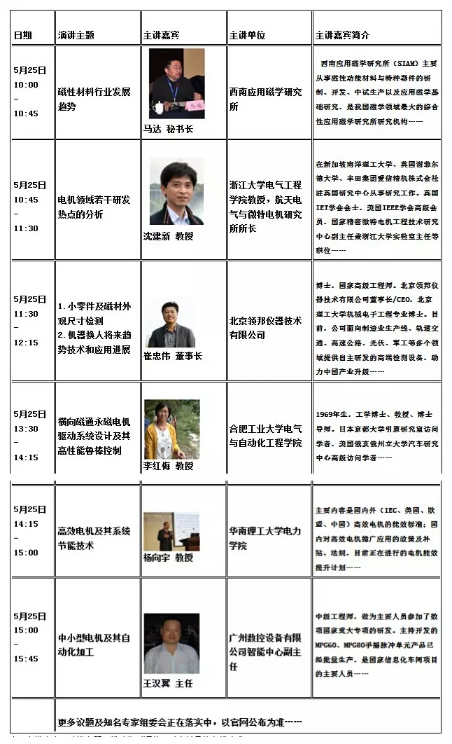 2016深圳國際微特電機及磁性材料創(chuàng)新與應(yīng)用技術(shù)論壇安排表 時間/地點:2016年5月25日 ; 深圳會展中心 組織單位:廣東智展展覽有限公司 參會對象:國內(nèi)外微特電機制造商、磁性材料生產(chǎn)商﹑電機磁材應(yīng)用領(lǐng)域汽車、家電、自動化、伺服控制等應(yīng)用領(lǐng)域工程師、機電工程師、采購經(jīng)理以及來自科研院校、行業(yè)協(xié)會的高級專家等。 演講議題