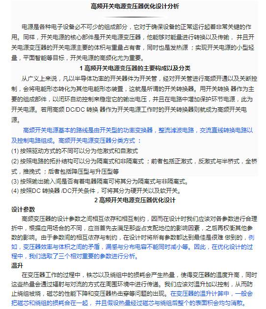 【周周學(xué)術(shù)欄】高頻開關(guān)電源變壓器優(yōu)化設(shè)計分析