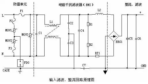1、AC輸入整流濾波電路原理: