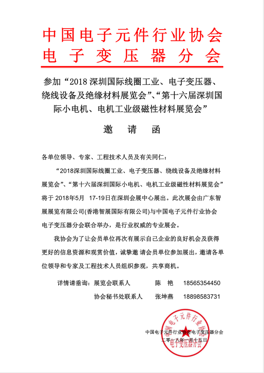 為進一步整合行業(yè)資源,提升展會質(zhì)量,更好地為行業(yè)服務(wù),中電元協(xié)電子變壓器分會將作為本屆展會的主辦單位全面參與2018深圳國際線圈工業(yè)、繞線設(shè)備及電子變壓器展覽會。雙方將在資源整合、數(shù)據(jù)共享、展會招商、宣傳推廣、同期會議等領(lǐng)域開展深度合作,預(yù)將深圳國際電子變壓器展打造成全國最大最專業(yè)的行業(yè)展會。