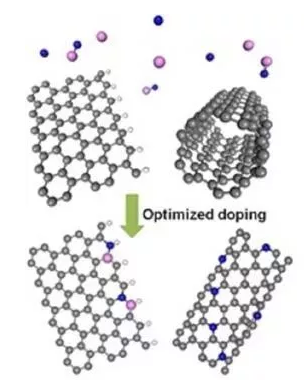據(jù)發(fā)現(xiàn),由于摻雜劑之間的相互作用以及化學(xué)鍵的變形,氮摻雜多的超薄碳納米管能夠最有效地發(fā)揮作用。納米管在這方面比納米帶好,因?yàn)樗鼈兊那,扭曲了化學(xué)鍵的邊緣使其更容易結(jié)合。他們發(fā)現(xiàn)半徑在7至10埃之間的超薄納米管是最理想的。