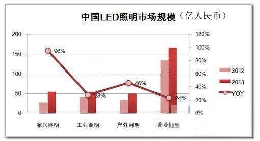 全球市場(chǎng)研究機(jī)構(gòu)TrendForce旗下研究部門LEDinside發(fā)表的《中國(guó)照明市場(chǎng)報(bào)告:2013年版》指出,2012年中國(guó)政府通過(guò)一系列政策措施刺激LED照明內(nèi)需,帶動(dòng)中國(guó)LED通用照明市場(chǎng)啟動(dòng)。主要的政策包括安排22億人民幣支持推廣節(jié)能燈和LED燈,并在2012年10月1日正式實(shí)施白熾燈禁令,內(nèi)容包括禁止銷售100W以上的白熾燈以及一定能效指標(biāo)以下的鹵鎢燈。由此釋放出的替代需求將大大促進(jìn)節(jié)能燈以及LED照明在中國(guó)市場(chǎng)的推進(jìn)。預(yù)估2015年,中國(guó)的LED統(tǒng)一照明需求將可達(dá)100億美金。而隨著經(jīng)濟(jì)持續(xù)成長(zhǎng)與LED普及率提升,至2020年中國(guó)的LED通用照明需求將可達(dá)220億美元。 1 2013年LED照明市場(chǎng)真正走向成熟 走過(guò)2012年的嚴(yán)冬,經(jīng)過(guò)市場(chǎng)嚴(yán)酷洗禮后,2013年的LED產(chǎn)業(yè)迎來(lái)了盛秋。 從2008年、2009年開(kāi)始,LED就逐漸開(kāi)始在各個(gè)區(qū)域市場(chǎng)開(kāi)花結(jié)果,但是當(dāng)時(shí)的LED照明光源發(fā)光頻率、質(zhì)量與電性規(guī)格的水平都比較低,從而導(dǎo)致很多領(lǐng)域的LED照明市場(chǎng)推廣都受到阻礙。2012年更是LED悲壯的一年,受到全球金融危機(jī)、歐債危機(jī)、產(chǎn)能過(guò)剩等因素的影響,LED產(chǎn)業(yè)逐步步入了嚴(yán)冬。 而就2013年的局勢(shì)來(lái)看,LED成品燈具、LED光源模塊、LED光機(jī)都正式在量產(chǎn)品上達(dá)到或超過(guò)100lm/W的水平,LED芯片甚至拉高到140lm/W-160lm/W的水平,不僅LED照明的發(fā)光率提高,而且量產(chǎn)品的質(zhì)量和穩(wěn)定性都有顯著提升,讓LED照明的推廣很受鼓舞。這些利好的發(fā)展加上LED本身被人們看好的節(jié)能環(huán)保等優(yōu)勢(shì),使得LED照明項(xiàng)目與終端市場(chǎng)在2013年都呈現(xiàn)了穩(wěn)定成長(zhǎng),而且其上升幅度比以往更為明顯和強(qiáng)烈。 全球市場(chǎng)研究機(jī)構(gòu)TrendForce旗下研究部門LEDinside在最新一期”中國(guó)LED照明”報(bào)告指出,2013年中國(guó)LED照明市場(chǎng)規(guī)模將會(huì)達(dá)到人民幣324億元,年成長(zhǎng)達(dá)36%,特別是居家照明市場(chǎng)已經(jīng)一躍來(lái)到僅次于商用照明的應(yīng)用市場(chǎng),2013年的成長(zhǎng)幅度將有96%。傳統(tǒng)照明廠商雷士、歐普、三雄極光與佛山照明皆已切入LED照明,而兩岸LED廠封裝億光、艾笛森、木林森、長(zhǎng)方照明更是積極利用LED制造優(yōu)勢(shì)搶攻中國(guó)照明市場(chǎng)大餅。 2013年,LED市場(chǎng)開(kāi)始真正走向成熟,而在這條漫長(zhǎng)的發(fā)展之路上,LED產(chǎn)業(yè)還將會(huì)面臨更多問(wèn)題和挑戰(zhàn),LED產(chǎn)業(yè)的洗牌也不會(huì)停歇,淘弱留強(qiáng),LED相關(guān)產(chǎn)業(yè)鏈企業(yè)都應(yīng)該做好積極的準(zhǔn)備! 2 LED照明應(yīng)用市場(chǎng)發(fā)展大未來(lái) 從LED照明產(chǎn)品的使用族群與使用方式來(lái)觀察,LED照明相較于傳統(tǒng)照明能帶來(lái)更多的節(jié)能效益。因此商照、工業(yè)、戶外照明應(yīng)用由于節(jié)能的需求較為強(qiáng)烈,加上都是專業(yè)的使用者,LED照明的滲透率較為快速。