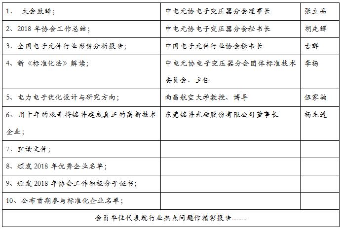 10月11日,2018年中國電子元件行業(yè)協(xié)會(huì)電子變壓器分會(huì)年會(huì)暨學(xué)術(shù)論壇,在江西省南昌市唯客麗晶國際大酒店順利舉辦。深圳國際線圈工業(yè)、電子變壓器、繞線設(shè)備及絕緣材料展(2019 CW -EXPO)組委會(huì)代表應(yīng)邀參加。 本次會(huì)議到會(huì)代表除了協(xié)會(huì)的會(huì)員單位外,還邀請(qǐng)了中國電子元件行業(yè)協(xié)會(huì)秘書長古群、南昌航空大學(xué)教授、博導(dǎo)伍家駒等電子變壓器行業(yè)內(nèi)資深的博士、教授和業(yè)內(nèi)領(lǐng)軍人物等作形勢(shì)分析、發(fā)展趨勢(shì)的報(bào)告。借此機(jī)會(huì),組委會(huì)代表積極與行業(yè)人士交流互動(dòng)學(xué)習(xí),推介2019 CW –EXPO。 在會(huì)期間,組委會(huì)代表與中電元協(xié)電子變壓器分會(huì)胡先輝秘書長現(xiàn)場(chǎng)深入交流,探討雙方合作事宜:在資源整合、數(shù)據(jù)共享、展會(huì)招展招商、宣傳推廣、同期會(huì)議等領(lǐng)域開展深度合作,打造全國最具影響力的行業(yè)展會(huì)。同時(shí),組委會(huì)代表還與現(xiàn)場(chǎng)行業(yè)會(huì)員單位京泉華科技、大忠電子、順絡(luò)電子、深圳可立克、銘普光磁、天通控股、江蘇埃能德、羅坤電氣、江西大有科技、東莞金華翼、江蘇寶杰隆、金寧三環(huán)、平湖美聲、陜西金山、日本優(yōu)尼、七星飛行、恒峰科技、等企業(yè)代表進(jìn)行深入溝通交流,向企業(yè)重點(diǎn)推介了2019 CW-EXPO,介紹了目前的進(jìn)行情況,部分企業(yè)也展示出極大的興趣,向我方代表詢問了相關(guān)細(xì)節(jié),并有意了解和參與展會(huì)。 繼往開來,全新起航!2019深圳國際線圈工業(yè)、電子變壓器、繞線設(shè)備及絕緣材料展以多年積累的行業(yè)資源為依托,配合深入企業(yè)及應(yīng)用市場(chǎng)進(jìn)行廣泛宣傳的招商形式,以及行業(yè)權(quán)威機(jī)構(gòu)的加入,目前,各企業(yè)報(bào)名參展踴躍、宣傳推廣工作扎實(shí)進(jìn)行, 各項(xiàng)展會(huì)工業(yè)穩(wěn)步推進(jìn),2019年5月8-10日與您相約深圳會(huì)展中心。 附: 大會(huì)議程安排: