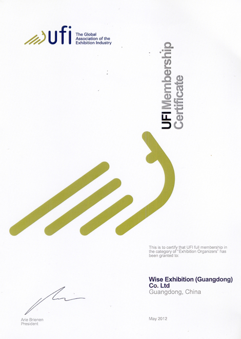 UFI認(rèn)證廣東智展展覽有限公司為其正式會(huì)員證書(shū)