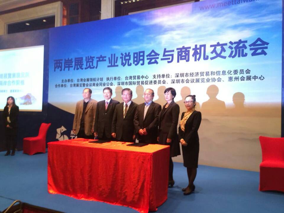 在交流會(huì)上,深圳市經(jīng)信委代表及臺(tái)灣貿(mào)易中心委員分別對(duì)深圳市和臺(tái)灣地區(qū)的展覽產(chǎn)業(yè)現(xiàn)狀做了介紹,臺(tái)方和大陸方會(huì)展企業(yè)代表還簽署了兩岸展覽產(chǎn)業(yè)合作意向書(shū)簽約儀式。兩岸會(huì)展業(yè)人士在短短一個(gè)半小時(shí)的交流會(huì)上開(kāi)展廣泛交流、尋求合作,探討跨區(qū)域互利共贏新模式。