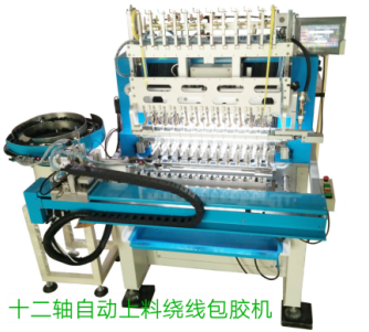 十二軸自動繞線機、十二軸自動上料繞線包膠機、雙振動盤自動浸錫機
